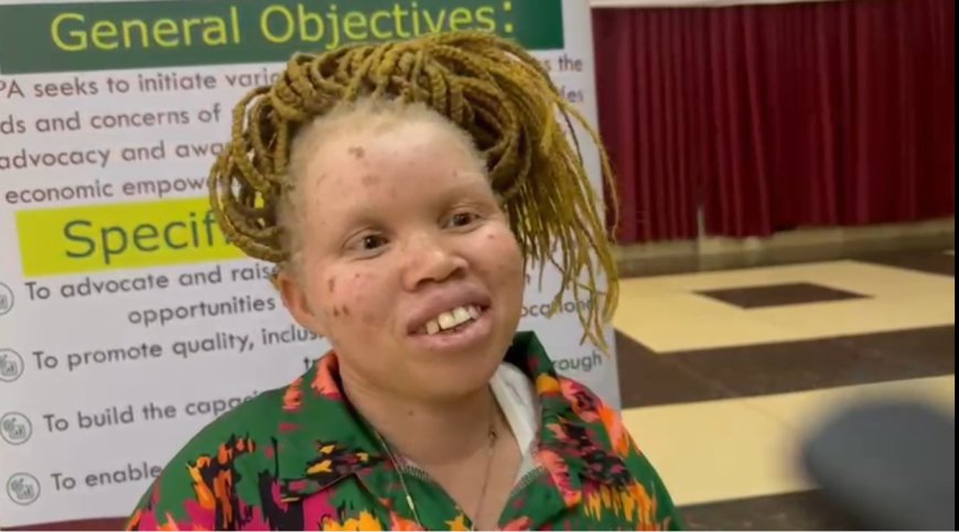 Valentine, umwe mu bafite ubumuga bw’uruhu, atanga ubuhamya avuga ku bibazo bahura na byo mu buzima bwa buri munsi.