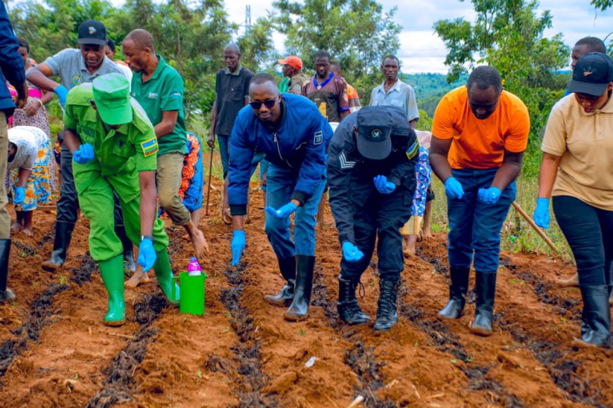Umunyamabanga Nshingwabikorwa w’Akarere Bwana INGABIRE Benoit, yifatanyije n’abahinzi muri iki gikorwa agaragaza ko ubuhinzi bukorwa mu buryo bugezweho ari bwo bufasha kongera umusaruro no guteza imbere imibereho myiza n’iterambere by’abaturage.